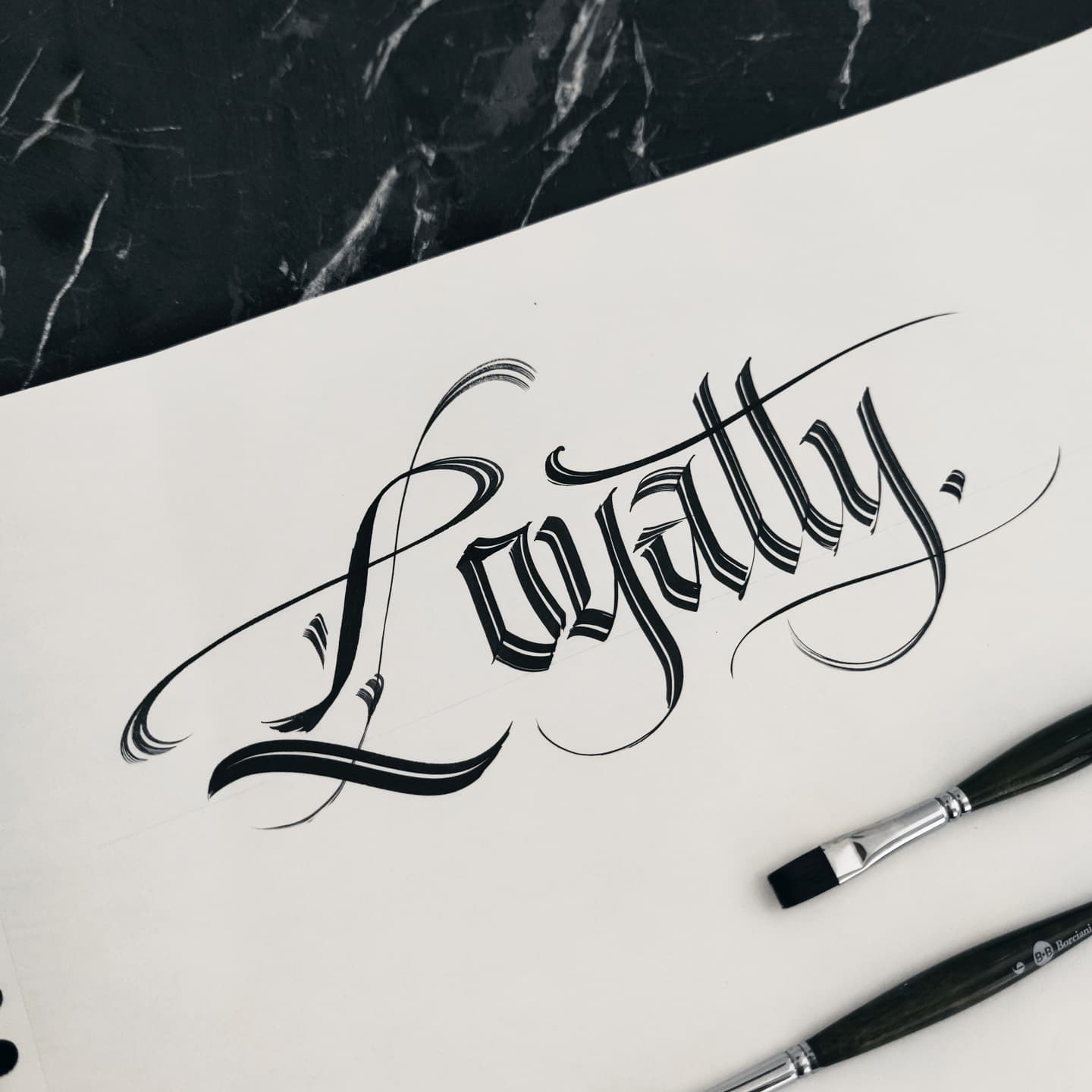 In questi ultimi anni il mio approccio alle lettere é virato verso un estetica affine al mondo del tatuaggio, seppur rimanendo fedele ai principi calligrafici, l’estetica finale delle mie lettere si è arricchita di elementi propri del mondo del Lettering. Ora le mie lettere e le mie scritte hanno un’estetica ancora più potente e significativa.