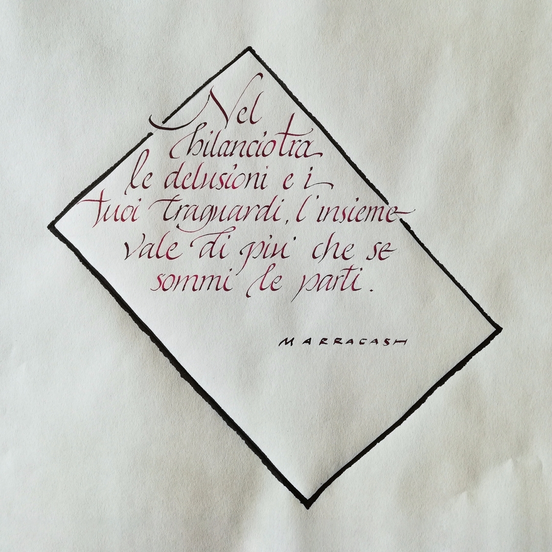 Perché la calligrafia è disciplina e libertà insieme. È rispetto della tradizione e coraggio di sperimentare. È un modo per ritrovare concentrazione, esprimere creatività e riscoprire il valore del tempo dedicato a qualcosa di bello.