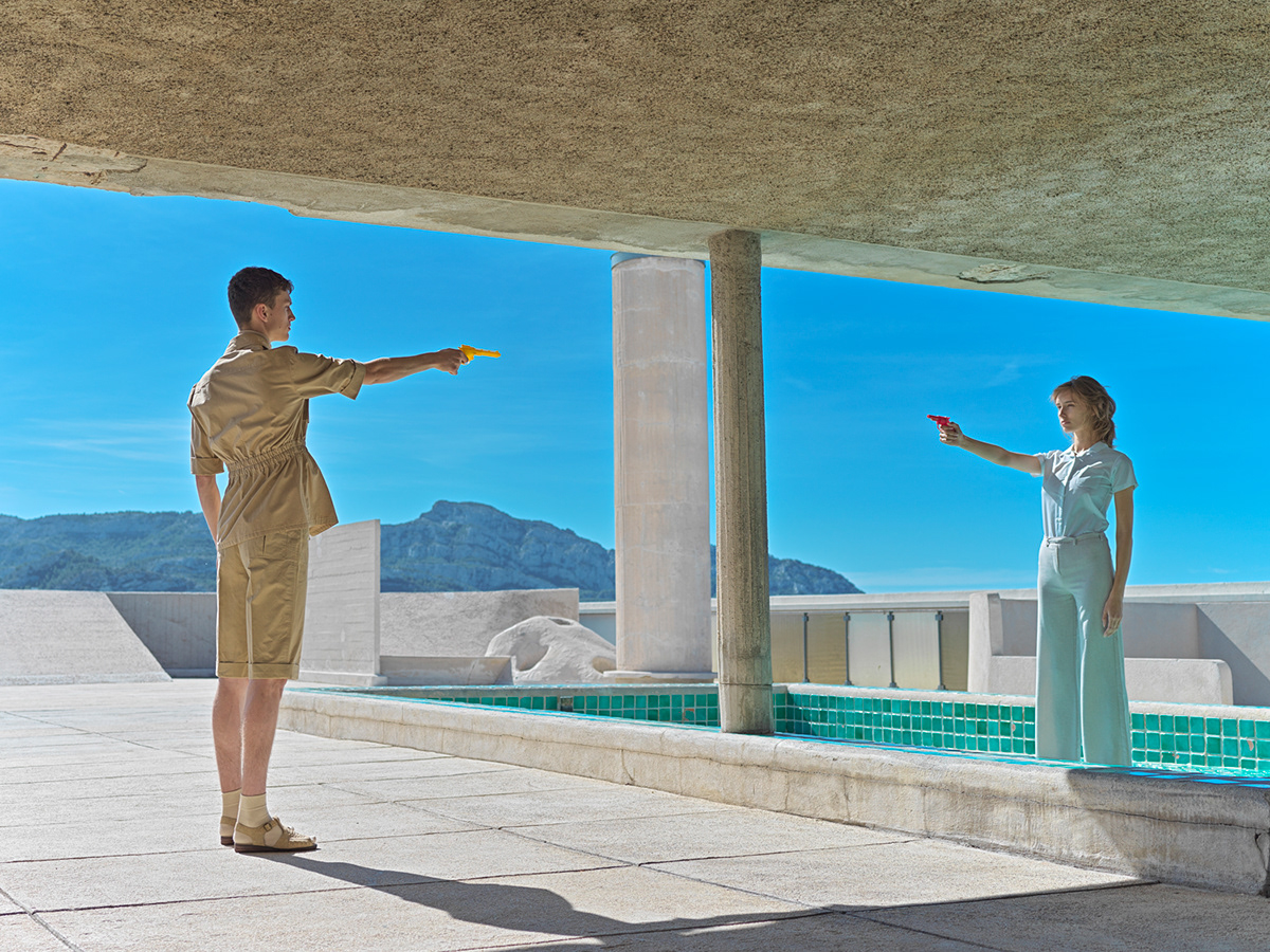 Molti altri fotografi (René Burri, Martine Franck, Guido Guidi,Takashi Homma, per citarne alcuni) hanno raccontato le opere di Le Corbusier, ma vorrei parlare del racconto recente che una giovane fotografa slovacca, a distanza di molto tempo e “senza il permesso” dell’architetto, ci propone per una delle sue opere: l’ Unità d’abitazione di Marsiglia. È Mária Švarbová (1988), più conosciuta per le fotografie di donne in piscina, giochi geometrici di forme e colori, in luoghi essenziali, sospesi nel tempo, che dedica un lavoro sul rapporto armonioso tra umanità ed architettura, ponendoci di fronte alla storia di due persone che questo edificio lo abitano e sottolinenando un altro importante aspetto dell’opera di Le Corbusier: la casa come “macchina per abitare”, ovvero un sistema efficiente che garantisce il benessere dell’individuo. Questo sistema perfetto, ma chiuso, garantisce anche un benessere di emozioni? Le emozioni non traspaiono dai volti dei protagonisti di questa storia, di cui si esplorano le relazioni che si costruiscono, disfano e ricostruiscono, che sa anche un po’ di nostalgia, di atemporalità, di sogno, che rimanda ai miti greci, e quindi all’origine greca della città in cui l’edificio è collocato. I legami tra gli esseri umani diventano anche rapporti con l’architettura che li contiene, forte per il materiale con cui è costruita, il cemento, e nell’essere simbolo di un periodo storico importante, e fragile nel voler concretizzare un’utopia, nell’essere chiusa, nella necessità di cure continue.