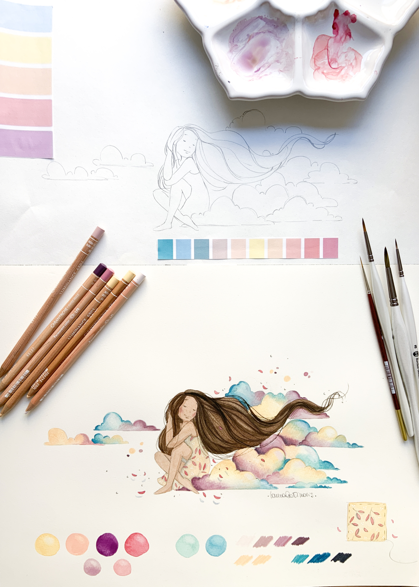Illustratrice innamorata dei colori, crea mondi e personaggi con la tecnica dell’acquerello che rappresenta per lei il modo più facile per rendere visibili i sogni.